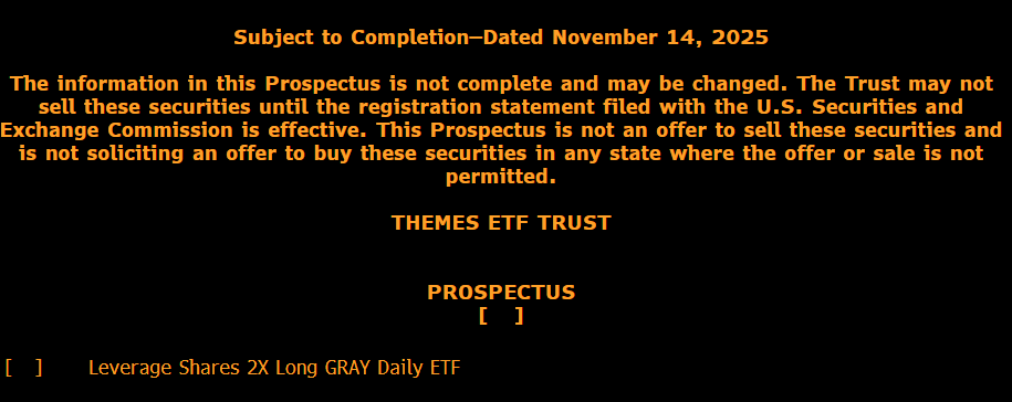 NEW: @ThemesETFs has filed for a 2x Grayscale ETF. @Grayscale only filed for its IPO yesterday. Wasting absolutely no time. $GRAY