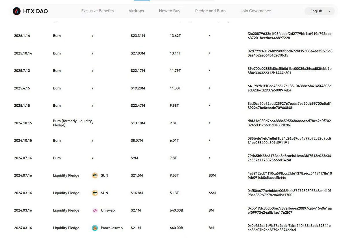 HTX DAO Announces Its 2025 Q4 Burn Results Based on HTX’s Q4 revenue performance, a total of 13.62 trillion $HTX were burned this quarter. The total value of this burn exceeds USD 23.31 million. To date, the total donated and burned supply has approached 10% of the total HTX