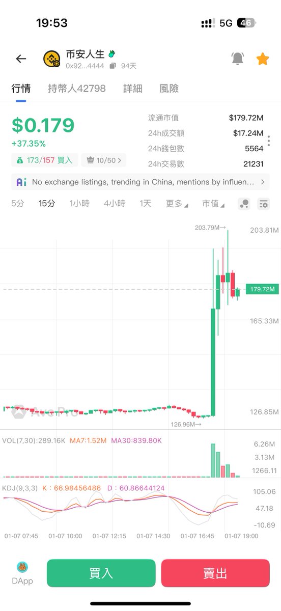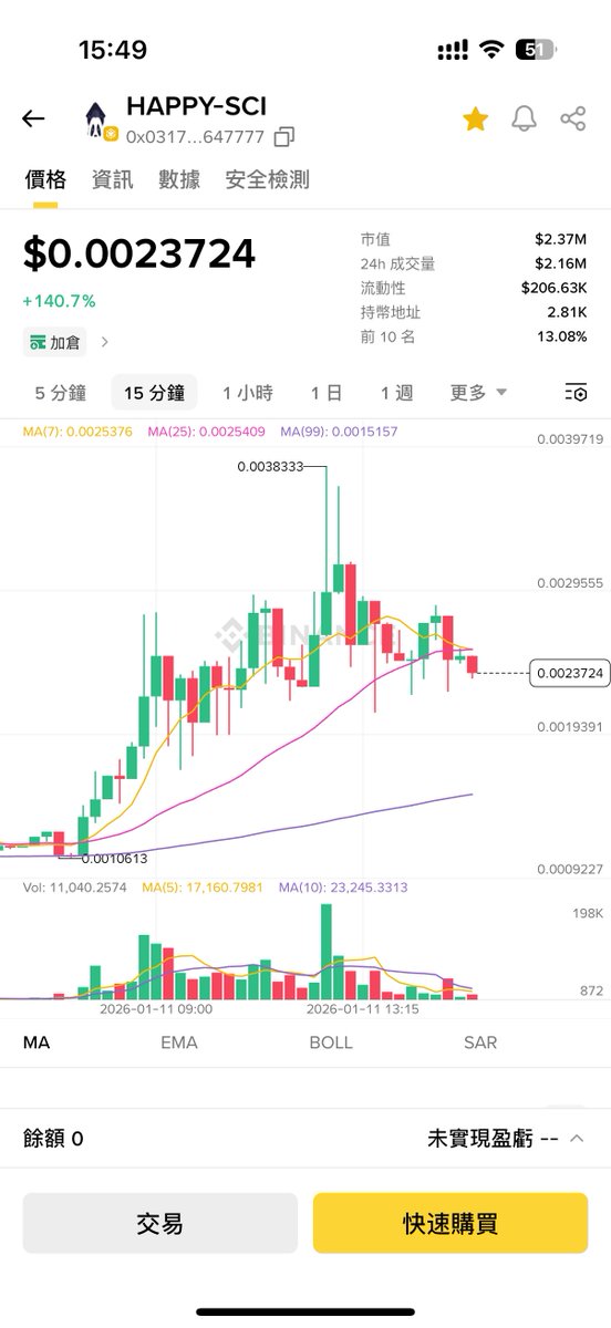 币安人生突然上线把S O L的热度拉过来了BNB ,同时也有很多项目被吸血到币安人生,大多数的人资产都在S O L上,来不及转回来B N B,杀了大家一个措手不及, $HappySci 也是被吸了一波,但几分钟又拉回来了,此时此刻B N B热潮正式打开,估计中文应该还要再上一两个现货和上几个合约,这几天双圣麻烦疯狂发文,谢谢😂😂