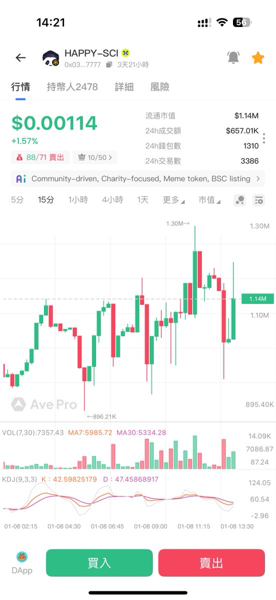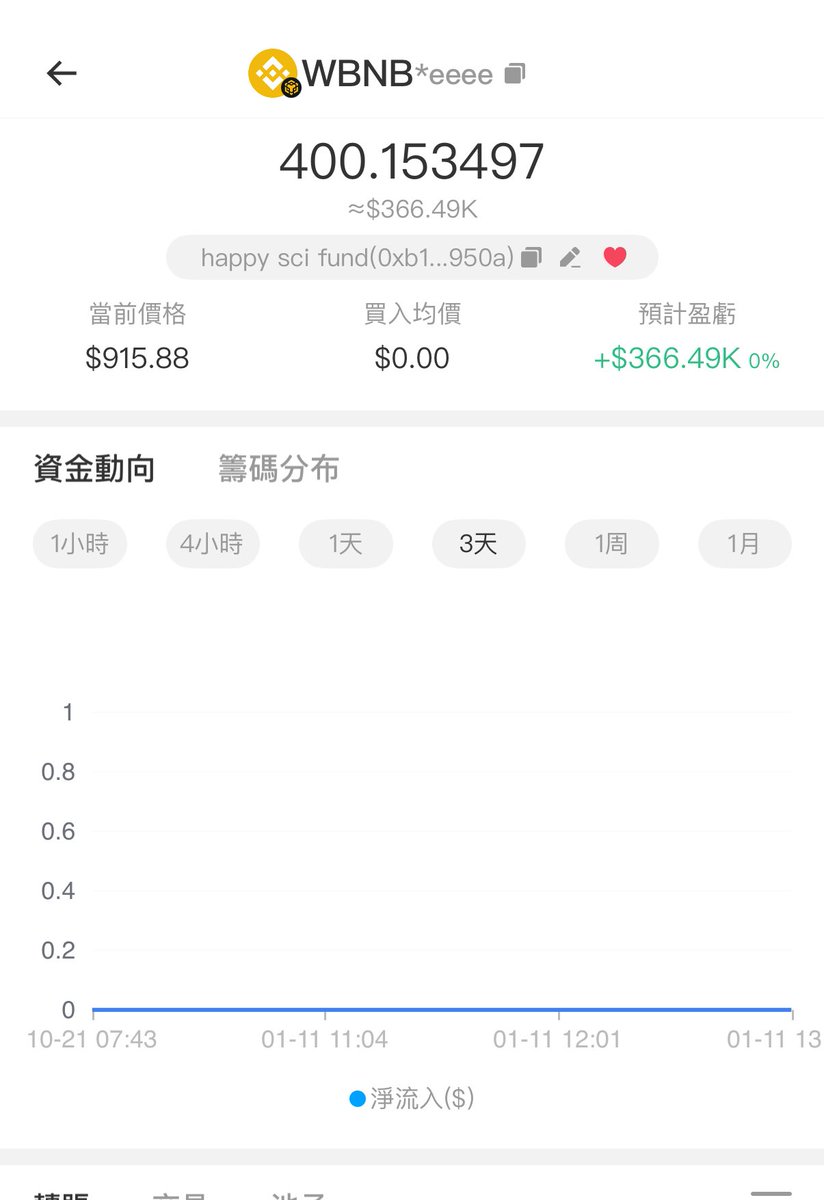 目前Happy-Sci科研慈善钱包已经收到了420个BNB,共计38万美元,社区人数正式突破1000人,昨日交易量200多万美元,当捐款累积到1000个BNB的时候,社区突破3000人的时候,我们才能证明自己,現在只有继续建设这条路,没有其它🫡