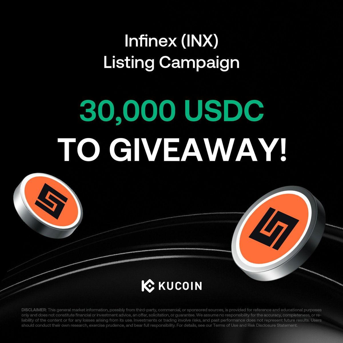 🎉 Infinex $INX is bringing double rewards to #KuCoin! 🔹 Activity 1: INX GemSlot Carnival – Share 20,000 USDC 🔹 Activity 2: KuCoin Affiliates Exclusive – Share a 10,000 USDC Don’t miss your chance to earn more as $INX goes live on #KuCoinSpotMarket! https://t.co/jHN7TTzFmM 👉Follow @infinex and @kucoincom on X or join our Discord to stay updated. #KuCoinGemSlot #INX #KuCoinAffiliates #KuListing