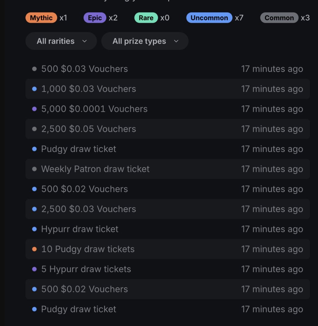 这个Infinex开箱子模式像不像Opensea的箱子,只是部分做了升级。 不同的是 @infinex 满足2.5w合约交易额度即可立马开箱子知道结果。大部分代币优惠劵还得低价再去买币。(可以看成活动空投资格,获得低价筹码,反撸不反撸最后决定权在项目方)然后用一些NFT或者奖金抽奖券吸引。当然还有一点就是记得去领手续费返回部分,一轮刷下来也能省一部分Gas。 看到有人看到了一万U奖金,千万别上头,运气也不是每个人都有。 最后祝好运!
