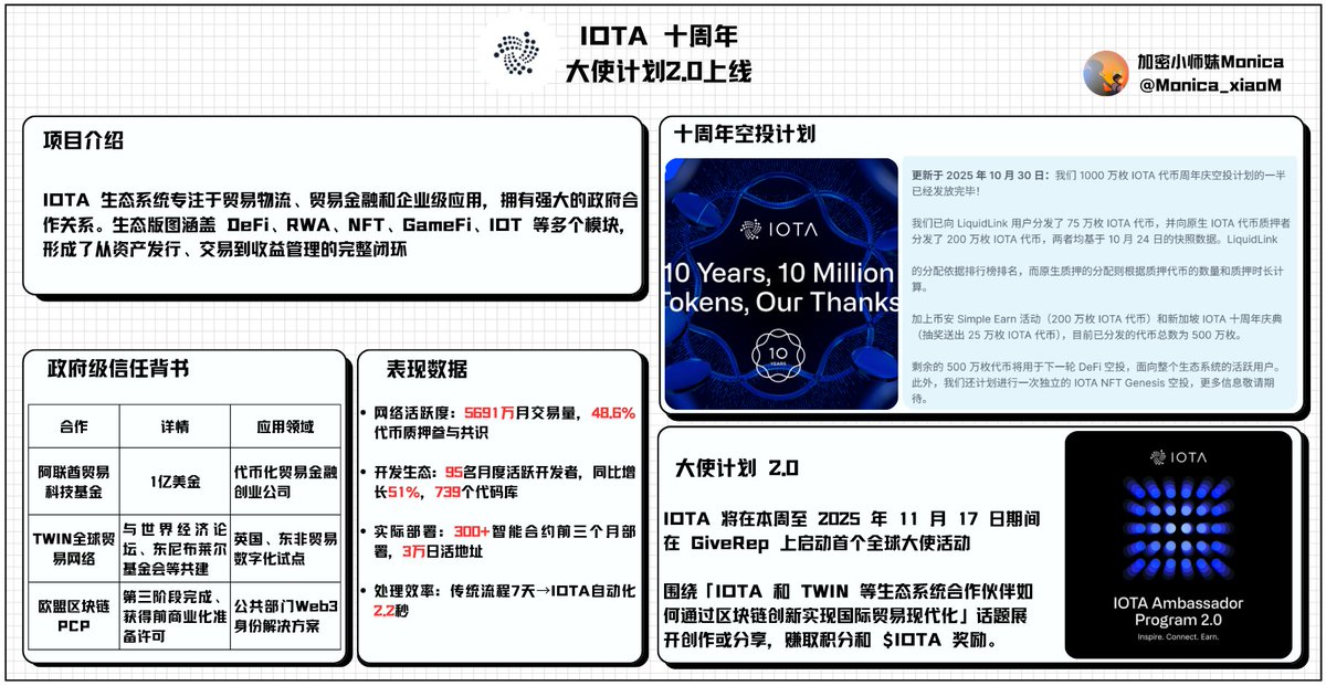 IOTA 并没有去卷 Memecoin 这种零和博弈,而是通过解决上述痛点,直接切入了这个被传统科技巨头忽视的、极具统治力的空白领域。