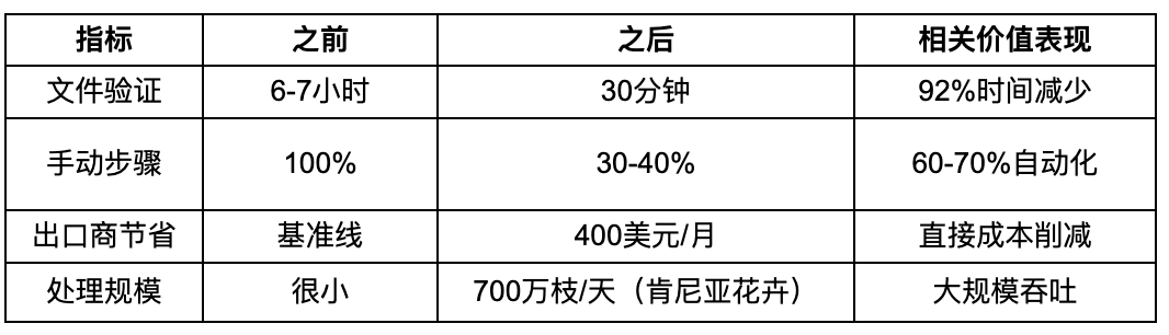 在肯尼亚,鲜花出口的相关数据每天约覆盖 700 万支实物商品,并已经进入稳定的链上处理流程。