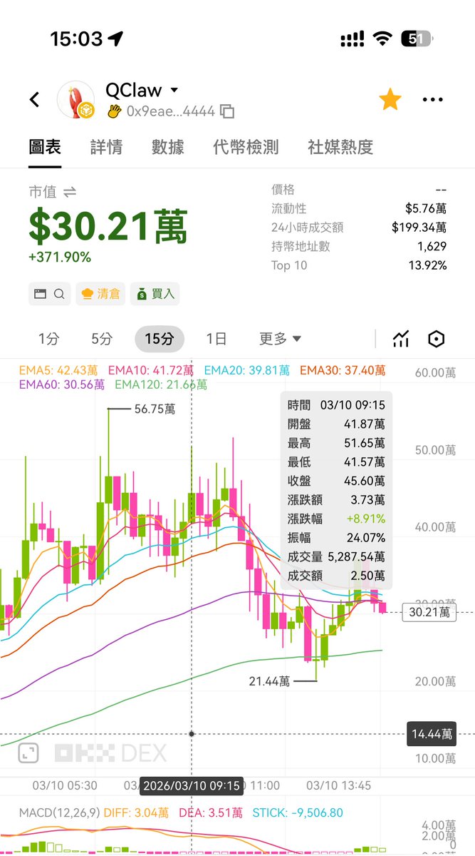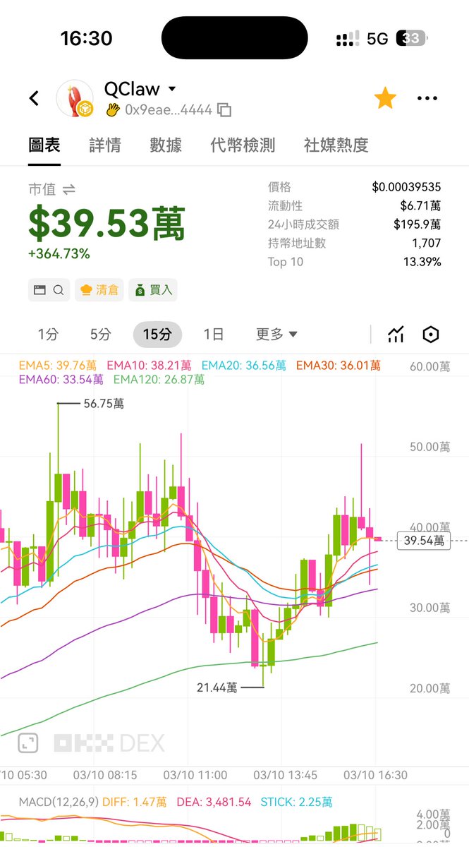 本來 $QClaw 回到了50万,刚刚又被 $Token 分流了,早上被 $Instreet 分流,下午又被分流,不过也不用怕,真金不怕火,他们去P完又会回来了,现在捡他们的便宜😂😂 #QClaw