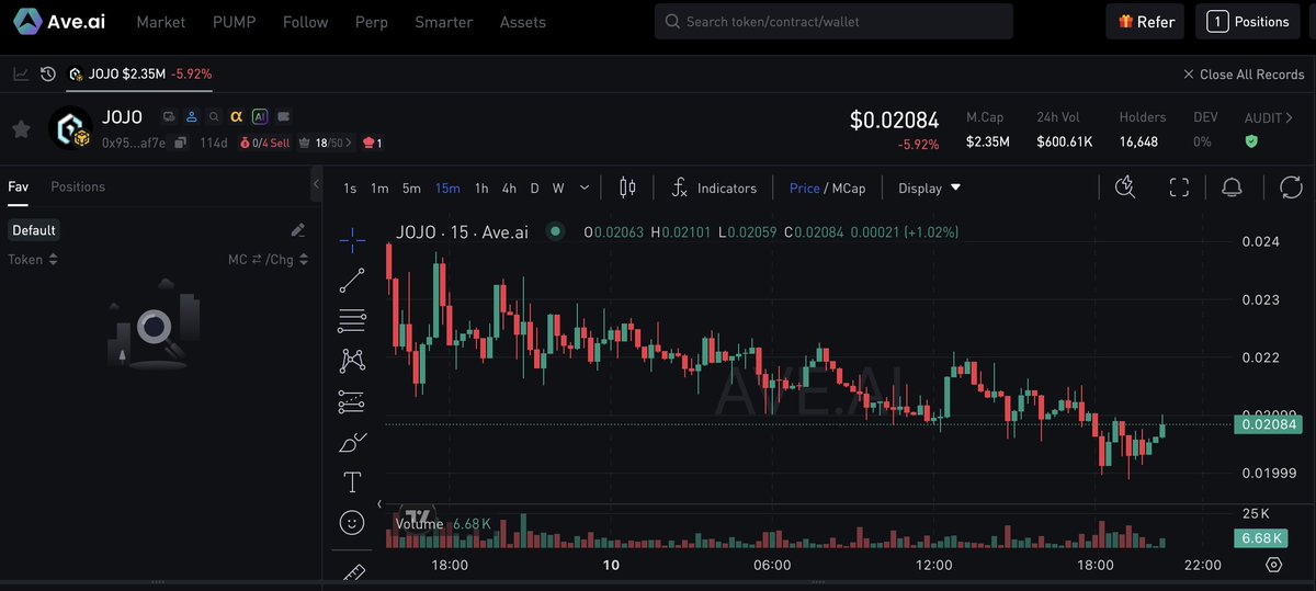 《19日操作日报》 昨夜, $aster 0.7了 刚才隔壁群0.5的时候,喊追 但傻哥终究失去了勇气 还有 $jobless 没吃到,1没吃到,昨天心思都在二级 $jobless 中间都快跪了,拿不住啊 $1 其实很明显的组局 还好 $asp 和 $bard 都小赚了 但这两天的失误还是大 洗洗脸,继续搞钱 保持平常心 接受自己无法预测市场 值得开心的事情是 $Tradoor 上合约了 上合约后,直接拉盘了将近1倍 而且有充足的时间可以买入 项目方实力还是强 另外 $NDQ 直接拉盘了 一直穿云箭 直接底部拉的快翻倍了 有强庄搞事情,心里就踏实多了。 $Sendit 傻哥出本了 漫长的洗盘真不容易 后续还有游戏预期,因此留了部分梦想仓位 $Stars 听说团队最近有些合作的动作 继续捏着吧 $U 今天价格在低位徘徊 上次200斤说找大户 干嘛要费那事儿 我自己就是大户 直接加仓了 最各大所上币节奏这么快 趁着流动性还行,尽快卖币 又高开了 老这么玩 我都懒得关注了 从昨天的 $AIA 到今天的 $AOP 和 $Jojo 何德何能,一个个上来几个亿,最低一亿起步 找不到点位先观察了