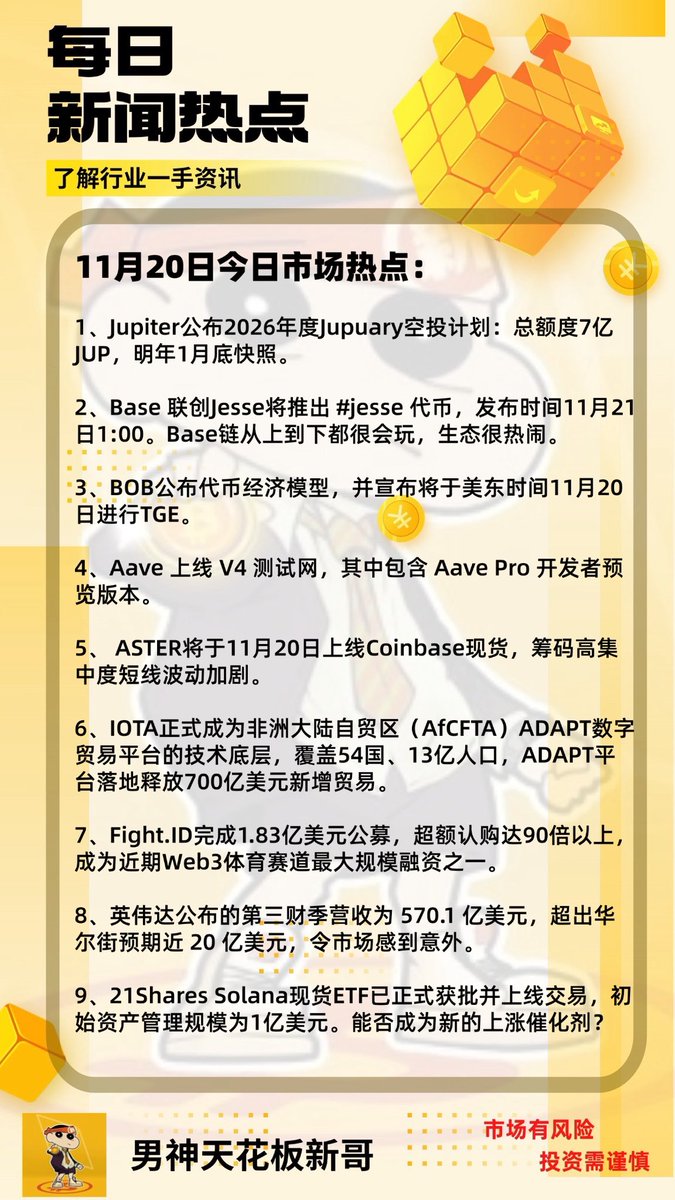 Base 联创bsse将推出 $jesse 代币,发布时间21日1点,是大哥还是大割? 非洲自贸区直接把 $IOTA 当成数字贸易底层,影响范围是 54 国、13 亿人。 整个 ADAPT 平台预计一年能带来 700 亿美元新增贸易、236 亿收益。 我认为 $IOTA 之前沉寂很久,但这次不只是合作是标准的洲级落地。只要稳定币支付再跑起来,IOTA 的链上需求大概率要起飞。 #英伟达 公布的第三财季营收为 570.1 亿美元,超出华尔街预期近 20 亿美元,令市场感到意外。这份财报进一步强化了英伟达在 AI 基础设施领域的统治力。