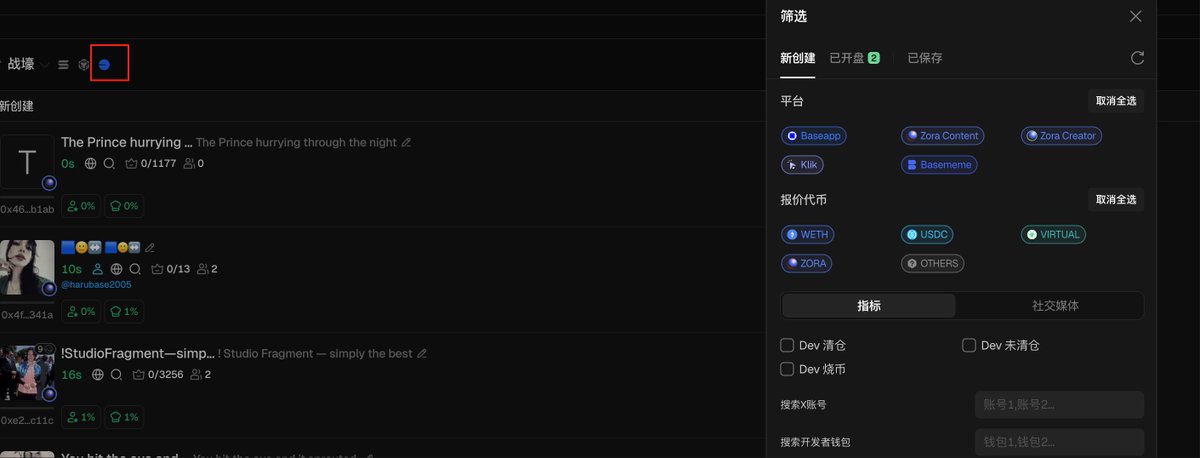 今晚BASE链的负责人Jesse要发币。 可以使用GMGN的BASE战壕。 把发射平台都勾选上。做好准备。