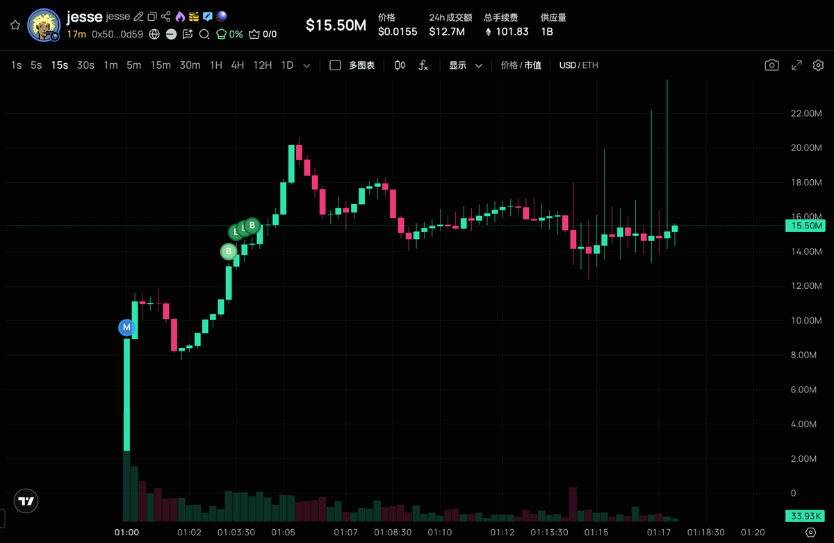 $jesse 已经开盘,目前市值1700万! 我一直在刷新Base app的主页,没想到最终是发ca到推特去了… 狙击手冲了进去,一点机会都没给… 既然如此,不冲了… 😑