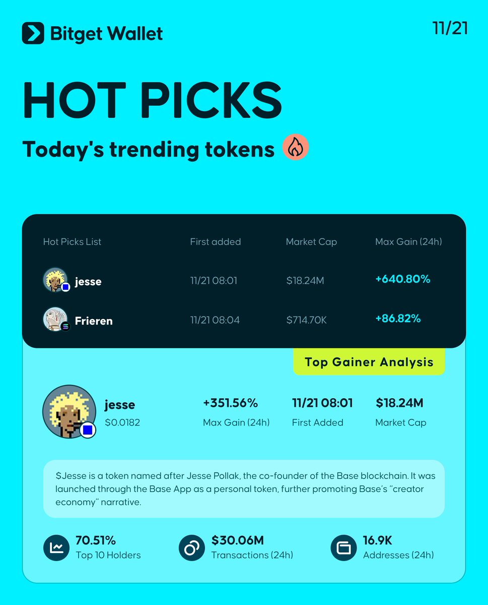Today's Hot Picks: > $jesse @jessepollak > $Frieren ➡️ Full list:
