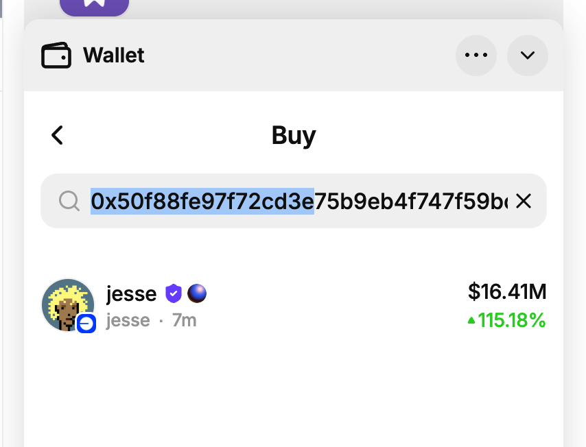$jesse 0x50f88fe97f72cd3e75b9eb4f747f59bceba80d59 Farcaster内可买