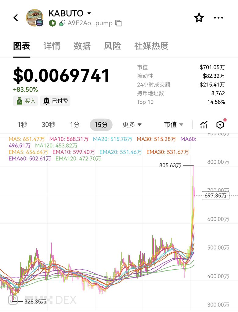 wow 一觉睡醒 $KABUTO 接近15M 请加入TG频道: (只发金狗) 我将在这里抽取第一张KABUTO 1st edition