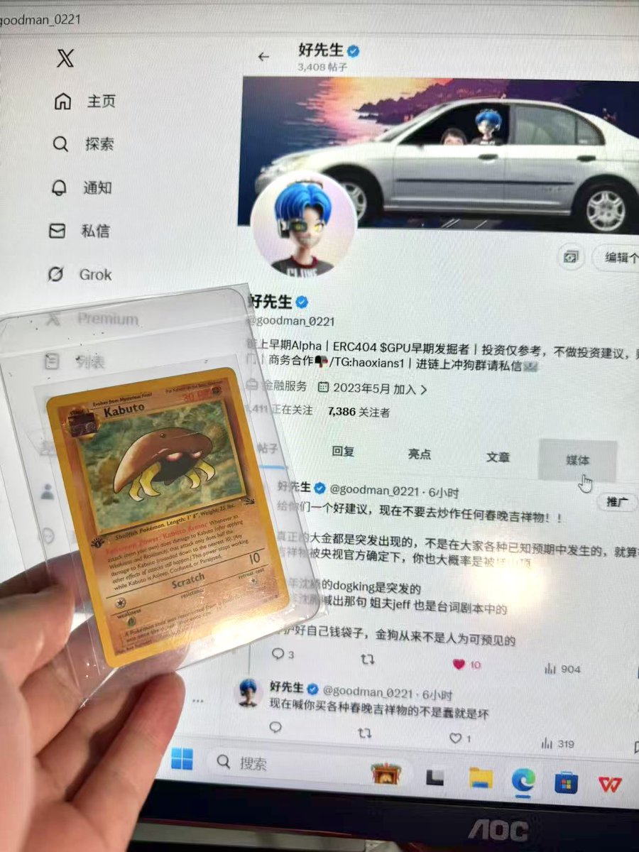 来聊一聊 $KABUTO 整个中文区来看的话,还没多少人关注到,今天新高3M 这么看好这个叙事的原因是因为在宝可梦卡牌里,喷火龙,以及一些换装皮卡丘算得上T0级别的。类比的话相当于币圈的BTC,ETH这类主流资产,CS里的纪念品龙狙,树篱手套这类的。 A9E2AopuG56LWYiXsvGLLTcLjUjQ539PY6k5Fhfepump 而KABUTO这张卡牌就类似大家平常在链上炒作的meme 三个月时间 从单张的0.2刀到现在的一张70刀 叙事为主要推动力,在宝可梦圈子里掀起了一波KABUTO热潮,在过去三个月时间上涨百倍,国内的集卡平台如集换社,卡淘,咸鱼都没有这张卡的影子。 链上的高流动性+KABUTO一刷稀缺性 托朋友花了300刀在国内找到了3张一刷,我会在 $KABUTO 到达5M,10M,20M分别通过这条帖子抽出去 三连这条帖子即可