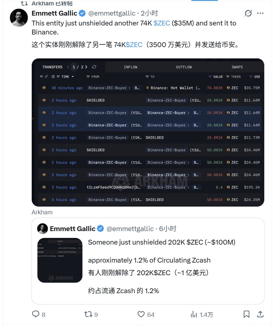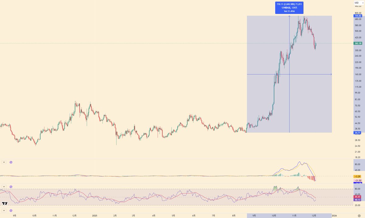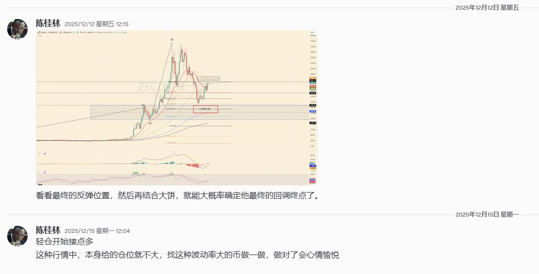 说说 $ZEC 这个币子吧,上涨的时候,我忙着在大盘亏钱,但是下跌我基本上从700空到了400(推特都有记录),虽然只有2万U仓位,但就算是玩上涨阶段,在我的体系里,也基本就是给他两万U,毕竟他只是个山寨; 拉升开始的时间和大饼见顶的时间基本一致,非常聪明的逆势拉升策略,然后先是国外以纳瓦尔为首的KOL们开始喊单,然后国内的一帮KOL在拉升一段时间内开始跟风(在200多之后),真正出信仰粉实在600之后(以涨服人); 这个币让我想起了 $KAS ,记得当年传销的口号是,KAS的旷工们,不到1U都懒得看,也确实在顶部区间来回拉扯了很长一段时间,现在,似曾相识的感觉; 我觉得来币圈玩,要认清两点:1真正能说的通逻辑的,只有比特币,对抗法币,对抗通胀,数字黄金;2这里是赌场,其他的币可以拿来赌,但是不能拿来当做信仰。 什么叫做可以拿来赌?成交量,波动率,操盘方式的熟悉感,历史表现和自己的交易系统适配不适配,都是可以参考的参数。 但是如果指望闭眼睛梭哈,靠一币逆天改命,我觉得,这种赌博方式,技术含量就很低了。