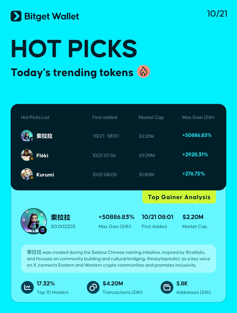 Today's Hot Picks: > $索拉拉 > $Flōki > $Kurumi ➡️ Full list: