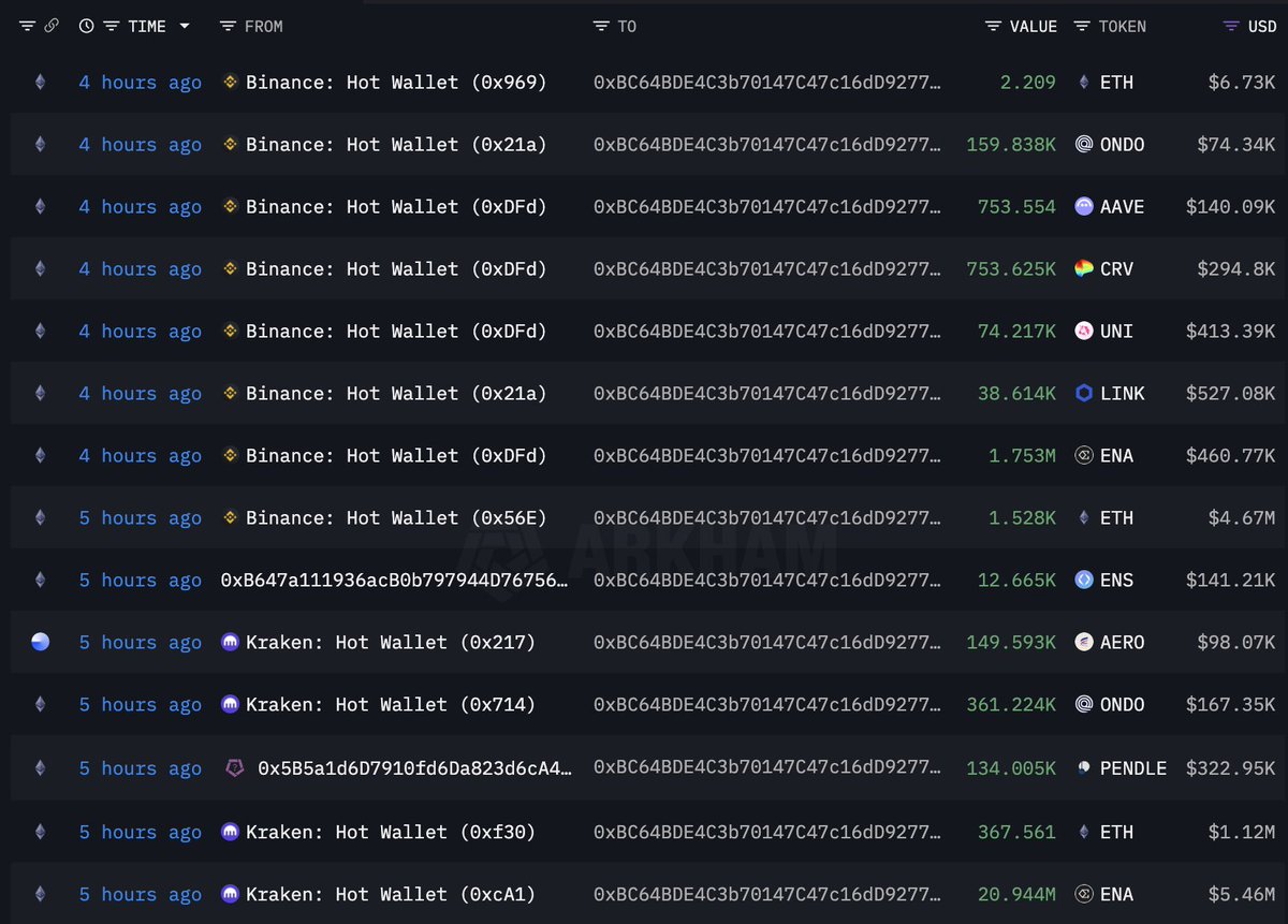 The mysterious whale "0xBC64" bought another ~$13.9M worth of 10 assets during the market dip — and moved them to on-chain wallet.