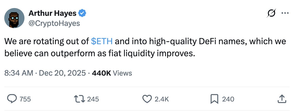 Arthur Hayes(@CryptoHayes) just bought more DeFi tokens.