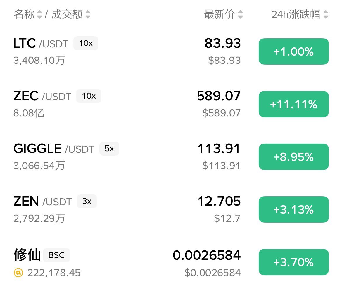 然后还包括了 $DOGE $HBAR $LTC 和 $XRP (不知道我有没有遗漏)