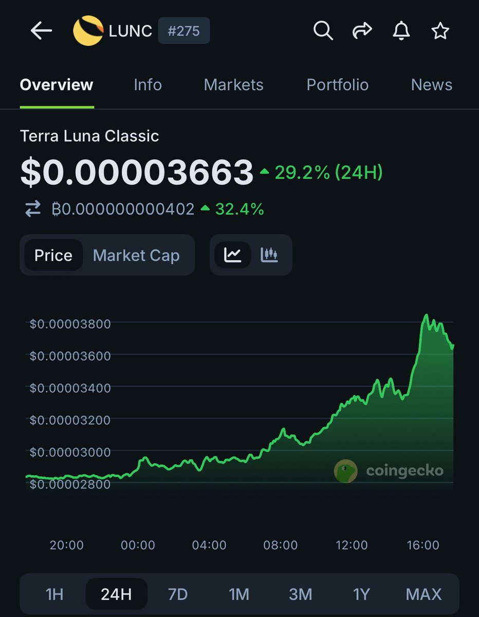 6. $ustc 和 $lunc ,今天会有销毁,lunc销毁多点,总量5%,然后项目方彻底关闭,由社区接管。我看二级已经拉盘了。