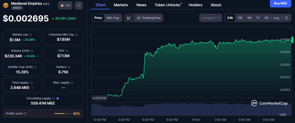 There’s nothing more bullish than waking up to your favorite game on Polygon @MedievalEmpires and seeing $MEE up 30% on the day.