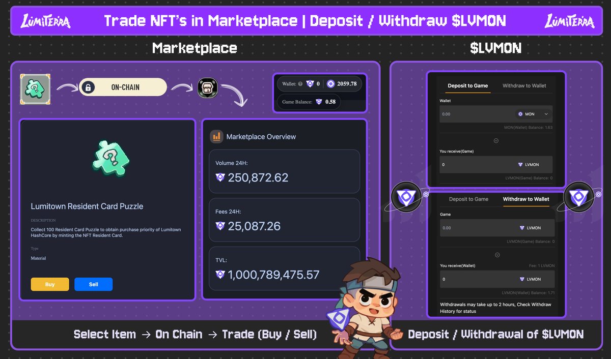Put an Item On-Chain for free & trade it in a marketplace averaging 200K $LVMON daily volume ⚡ A truly player-driven economy is here 🫡 Select Item ➜ On-Chain ➜ Trade Deposit your $MON into $LVMON instantly & use $LVMON for in-game & on-chain trades