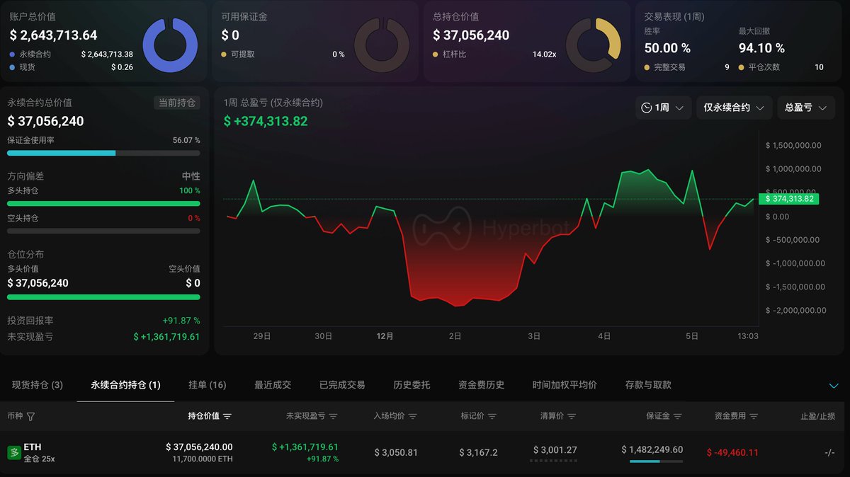 麻吉 $ETH 的浮盈还没落袋,HYPE 先亏回去 27.8 万美元😂 8 小时前他已经将 50000 枚 $HYPE 平仓割肉,目前仍剩余 3705 万美元的 ETH 25x 多单,持仓 11700 枚,平均开仓价 $3050.81,浮盈 136.1 万美元 Hyperliquid 账号好不容易从 50w 做到 334w,又缩水到 265 万美元了 传送门 👉 https://t.co/bw7NAe0pvt