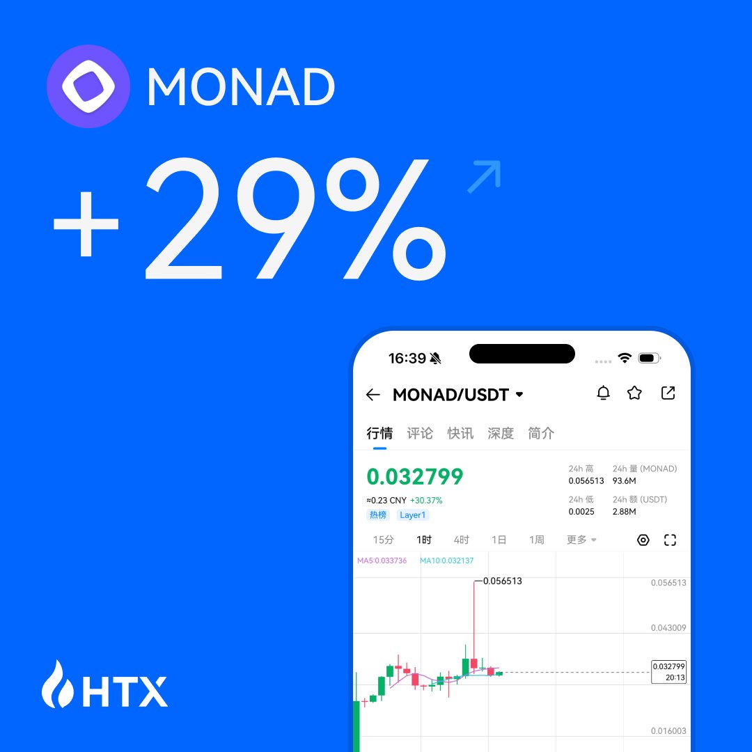 📣 这就是财富效应!这就是「火币严选」+「孙哥火眼金睛」的力量!新币起飞~ 【火币HTX数据监测显示】 $MONAD 涨幅超 29 % ,现报 0.031 USDT 拿着 $MONAD 的家人们在哪里🙋 评论区秀一下?