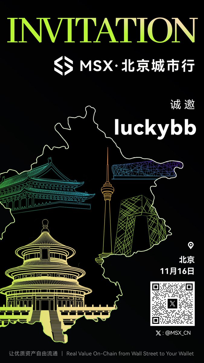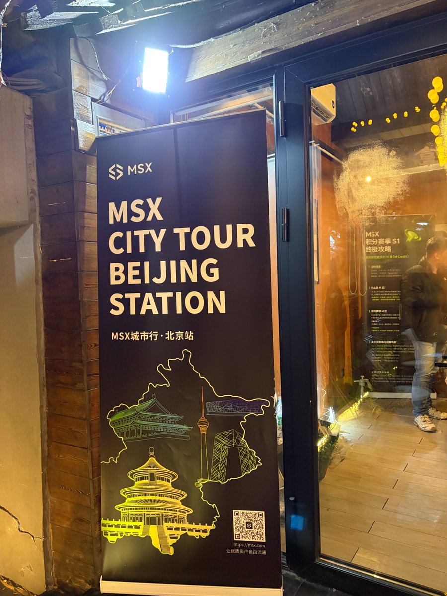 MSX @MSX_CN 在做积分赛期间,开始巡回各大城市举办活动,大B哥 @BTCBruce1 本身是搞矿圈的,他们链上美股平台麦通Q4或者明年Q1,应该要发币+积分代币空投了。 我不相信,他会把自己砸了那么多资金的项目选择在熊市里发。所以,目测市场还是有一波行情的?? 不要看一个人说什么,看一个人做什么。 MSX来到北京站了,让我去看看怎么个事?