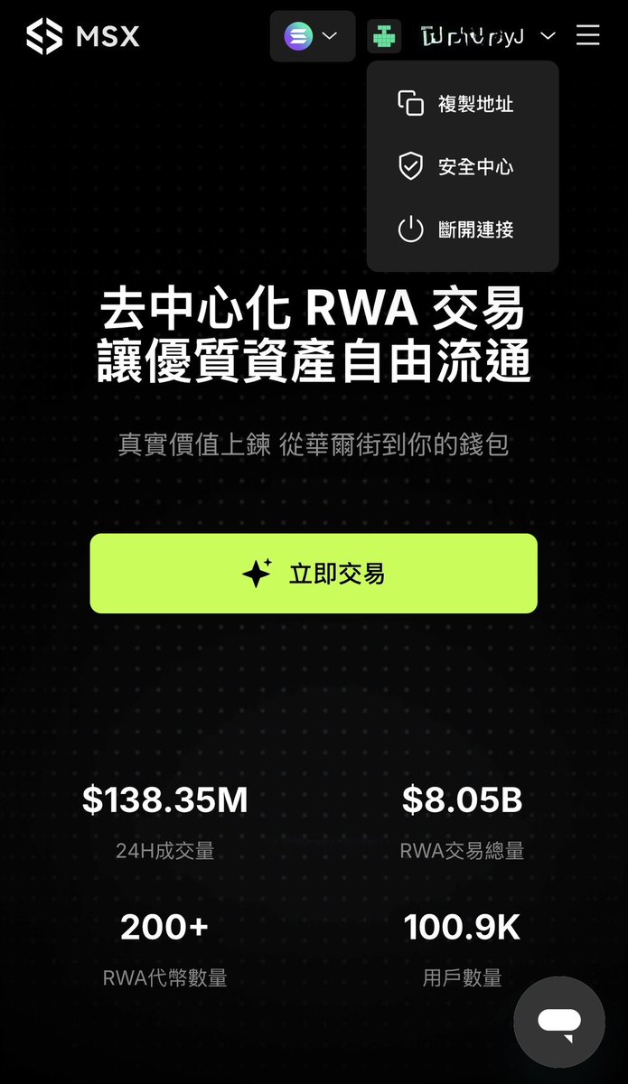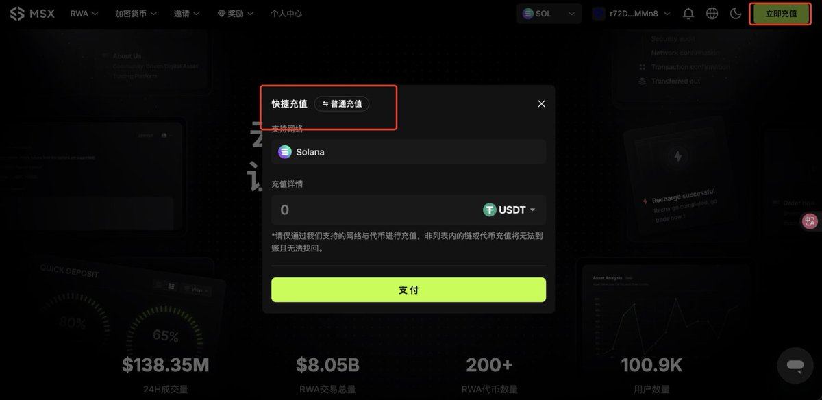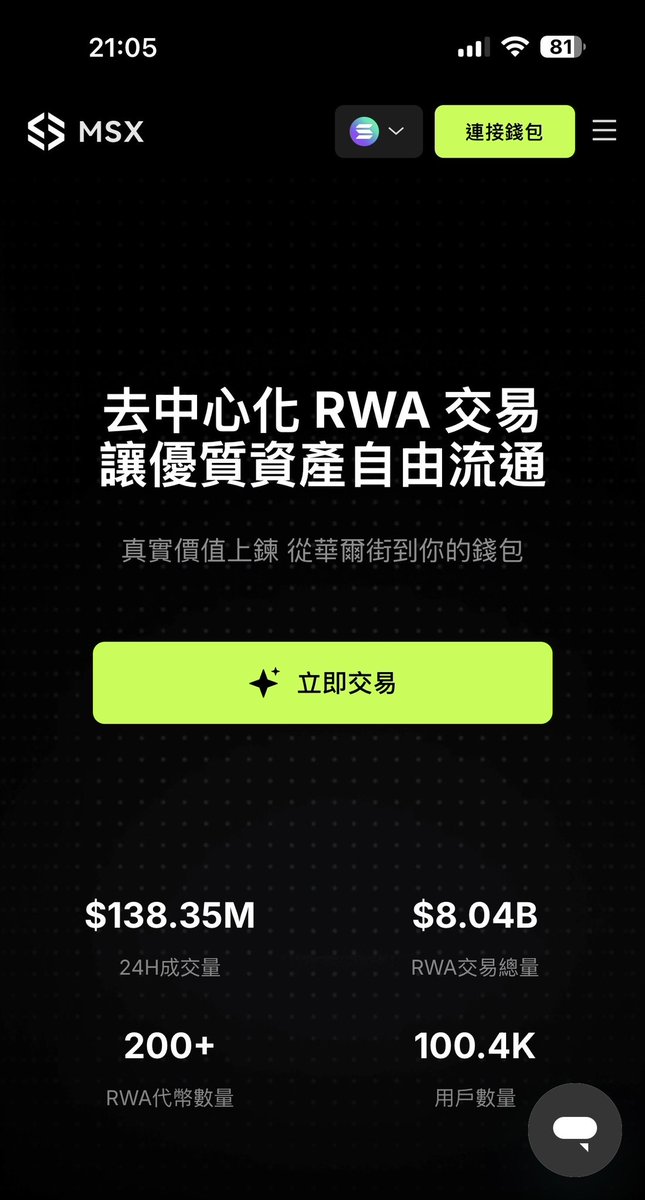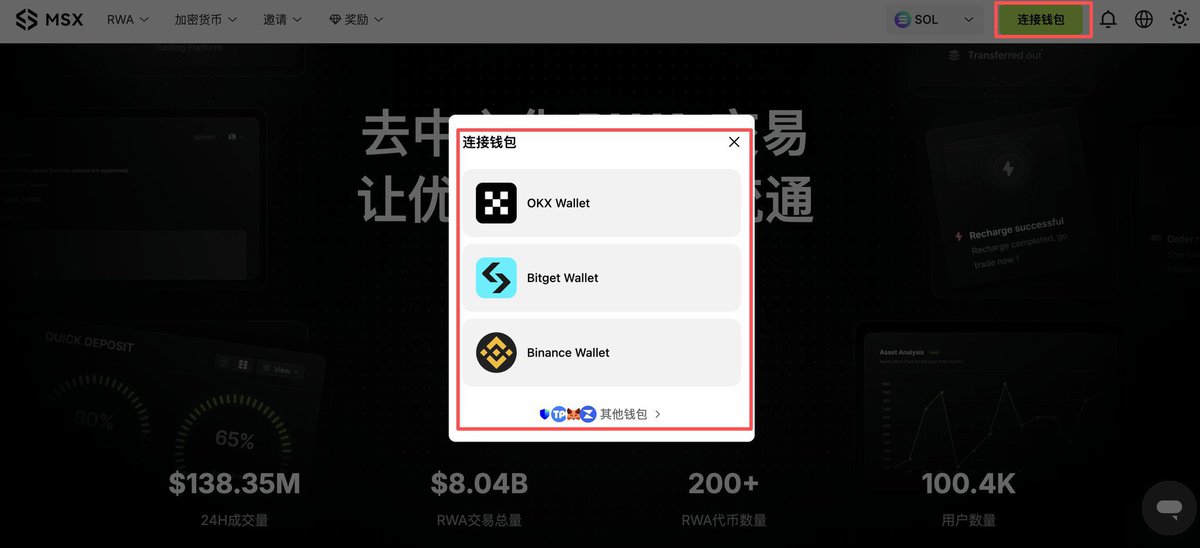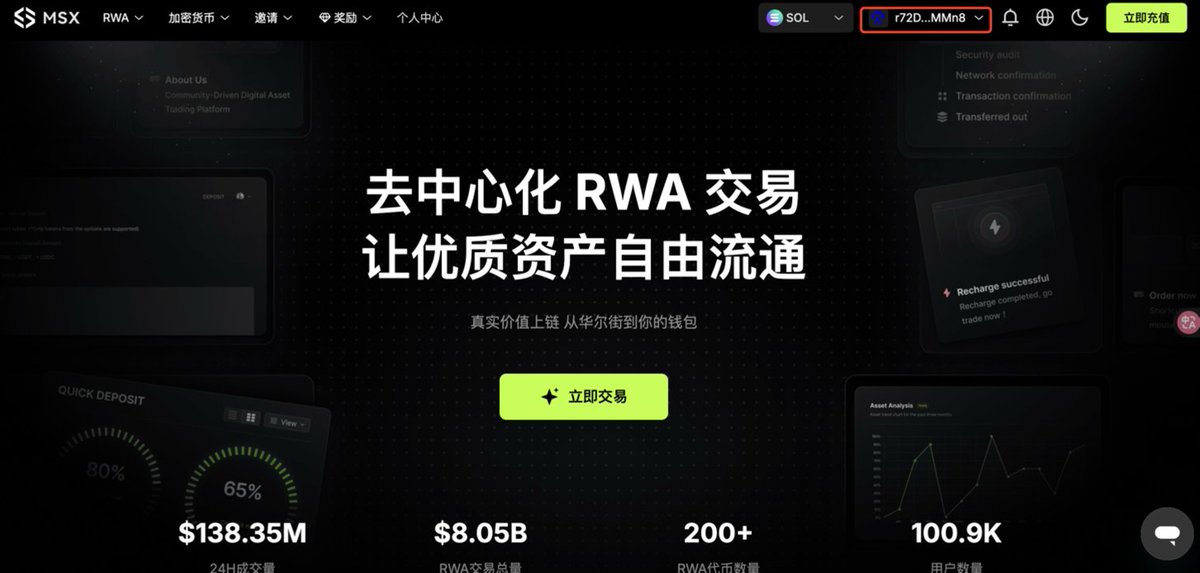 链上美股去中心化交易平台 $MSX 他来了 MSX 全新的 M 豆积分计划已上线 用户通过交易、持仓、盈利,甚至亏损 都能累计积分 未来 M豆将成为 $MSX 分配凭证 M豆的计算方式将从多个维度进行评估 包括交易量、仓位价值、盈亏表现、 团队活跃度与推荐贡献 以此全面衡量用户在生态中的真实参与度 那如何赚取 M 豆 ? 1/ 首先把要用来交易的 U 提到所用钱包 EVM 和 SOL 上的 USDT USDC USD1 都行 2/ 进入官网右上角链接钱包 (走表姐链接开最高返佣) https://t.co/ZjPv4FAy10 3/ 点击立刻充值 输入金额并支付 4/ 然后就可以到交易界面进行交易啦 为什么我看好 MSX ? 因为对普通用户来说 买股票一直是一件繁琐的事 开户、换汇、监管、延迟 层层阻隔 但 MSX 把这些复杂的流程都简化掉了 在一个平台里,就能完成美股现货、 美股合约、加密货币及其衍生品的交易 体验和自由度都远超传统交易系统 随着去中心化金融的扩张与融合 传统金融与加密资产的边界逐渐变得模糊 而 MSX 站在了这条交汇线上 等风来