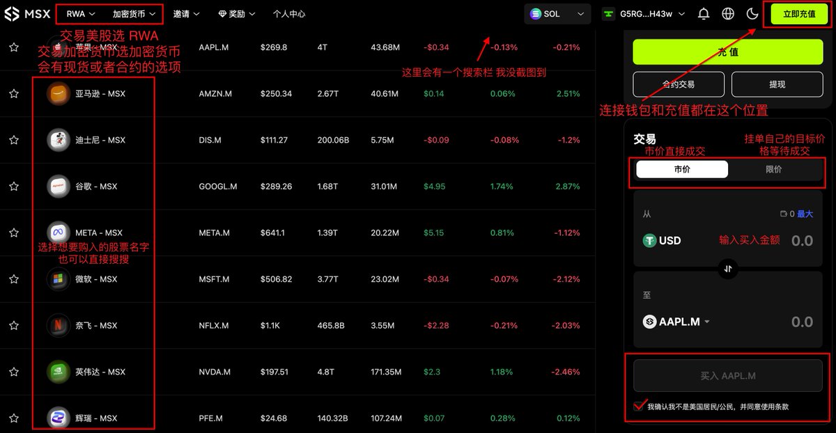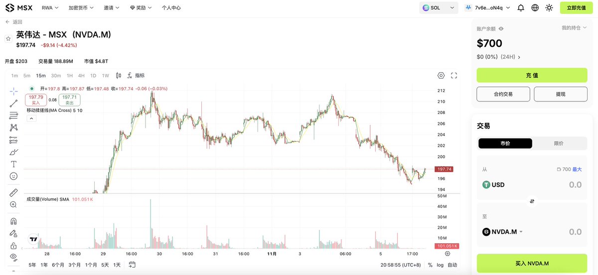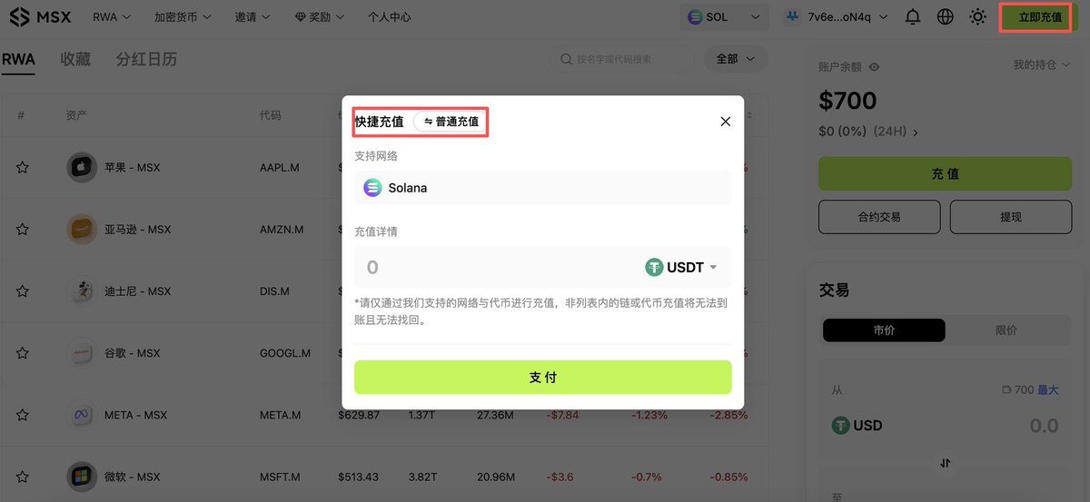 📢【MSX S1积分赛季正式启动:交易美股,积累M豆,共享生态未来】 全球首家链上美股去中心化交易平台麦通MSX,已于今日正式上线S1积分赛季及M豆(M Credit)激励机制。 这是一次将交易行为转化为长期价值积累的实践,旨在奖励为平台生态发展做出贡献的忠实用户。 ▍什么是M豆? M豆是MSX平台衡量用户交易活跃度与贡献度的核心权益指标,未来将直接用于平台代币 $MSX 的分配与激励。它不仅仅基于交易量,更综合考察以下维度: · 交易量评分:涵盖美股现货、币币合约及美股合约 · 仓位价值与持仓时间:仓位价值越高、持仓时间越长,积分加成越多 · 盈亏表现:每日实现盈利将计入积分模型 · 团队Boost等级:通过组建团队并提升活跃度,获取额外乘数奖励 ▍如何高效积累M豆? 1. 深化RWA交易参与:在美股现货、合约及币币交易中保持活跃度 2. 注重长期持仓:平台鼓励用户将MSX作为主要持仓平台,仓位价值与持仓时间将带来稳定加成 3. 提升交易专业性:每日实现盈利的用户将获得额外积分奖励 4. 善用团队协作:通过专属邀请链接发展团队,提升Boost等级,共享加成收益 ▍规则亮点 · 每日自动结算:系统于每日10:00(UTC+8)自动结算前一日积分 · T+2团队更新机制:交易次日结算积分,第三日更新团队等级与加成 · 历史交易回溯:老用户的历史交易数据将被自动识别并纳入激励 · 防作弊机制:系统自动识别异常交易行为,确保公平性 MSX通过M豆机制,将交易行为与生态共建深度绑定。在参与美股市场波动的同时,用户的每一笔交易、每一次持仓,都在积累确定的长期价值。 具体参与流程我以图片的形式放到下面 首先注册一个MSX账号,打开链接:https://t.co/j40YdGfT0J,链接你的Solana、ETH、ARB或Base钱包地址。 然后在任意界面点击右上角的立即充值,就可以看到快捷充值跟普通充值 快捷仅支持Solana链的USDT/USDC,普通充值支持Solana、ETH、BSC、Base、Tron的USDT以及部分生态的USDC和USD1。 最后充值完成后在最上方工具栏可以看到RWA和加密货币,我这里以美股的英伟达为例,点击进入RWA现货,选择英伟达,这里可以看到交易界面,包括市价交易和限价交易。 #MSX积分赛季 #M豆 #链上美股 #RWA @MSX_CN
