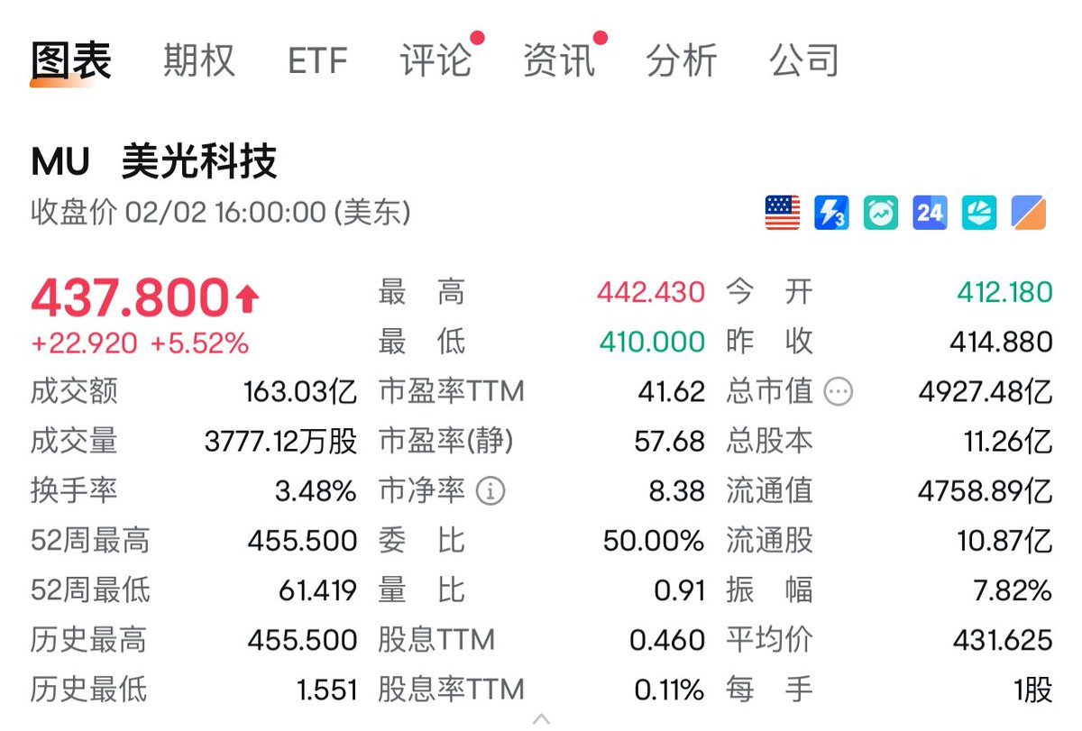 6.美股继续上涨,其中crypto人士都知道的 $MU $SNDK 继续拉升;