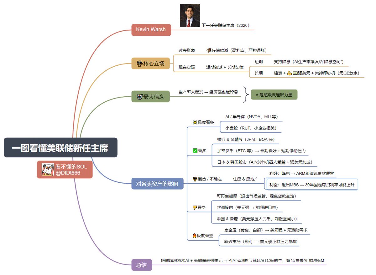沃什的政策大概率会造成全球股市分化:一边是能受益于美国强劲经济的国家,另一边是容易受美元走强、全球流动性收紧冲击的国家。