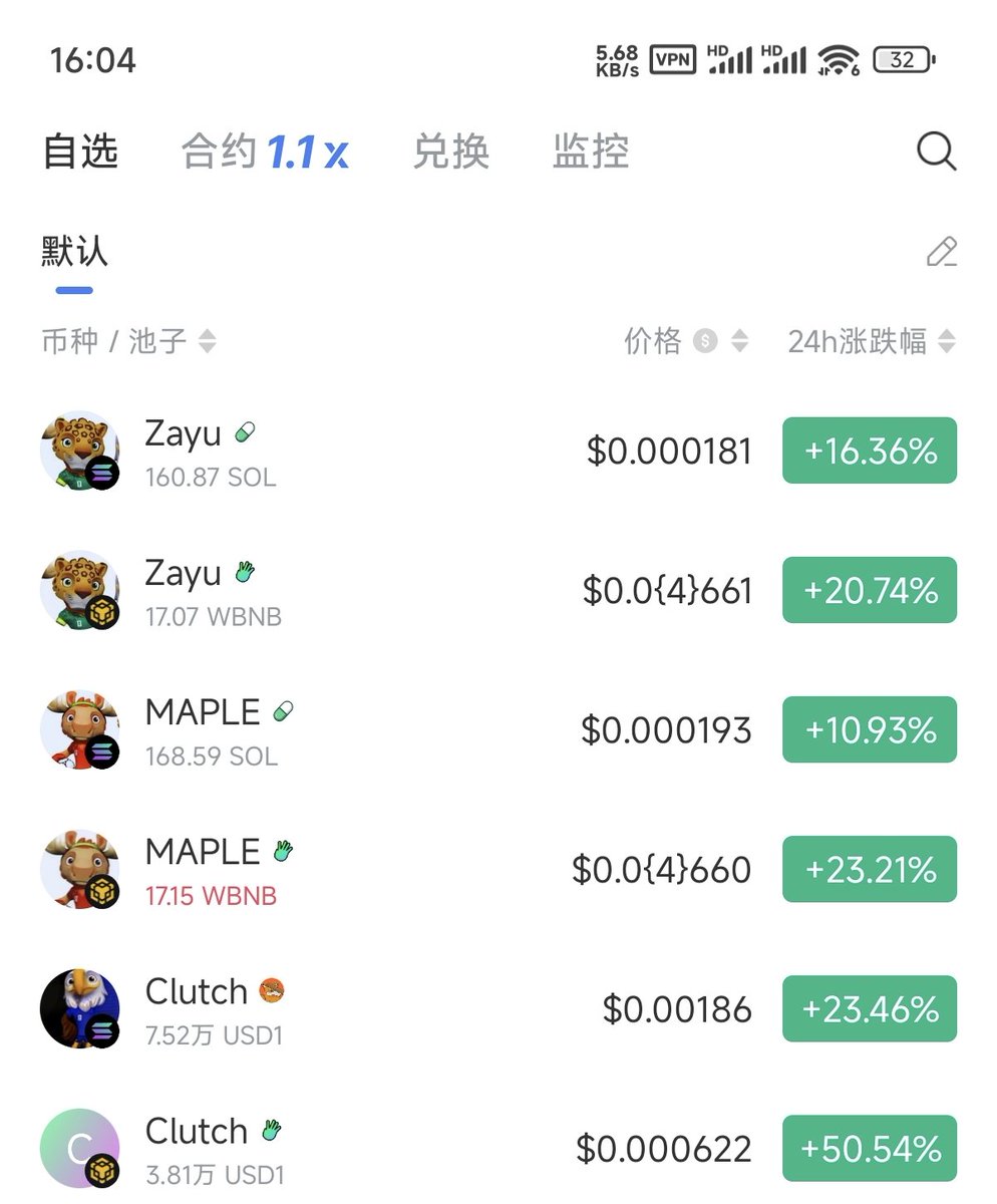 Okx链我就埋伏了吉祥三宝 $clutch $zayu $mape 实际sol链,bsc链,各种池子我都埋伏了。