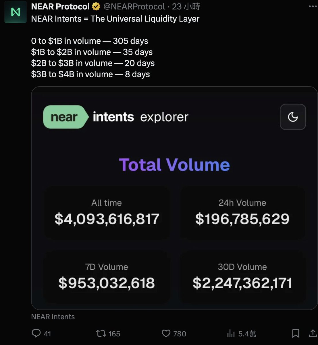 所以 Intents 用得越多 → NEAR 网络结算量越大 → 对 $NEAR 的需求越强。这不是空气叙事,是实打实的使用量转化。