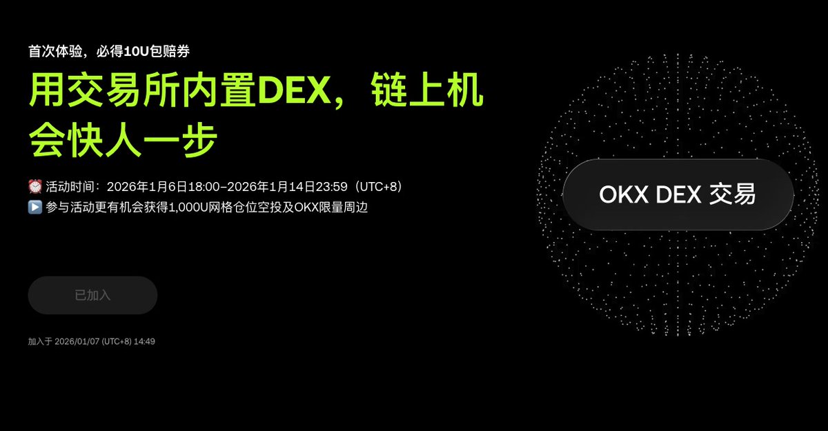 OKX内置DEX 第一期的Boost 是 $NIGHT ,当时交易量只需要2U。OKX刚推出一个面向内置 DEX 新用户的活动,没用过内置 DEX的都算新用户。