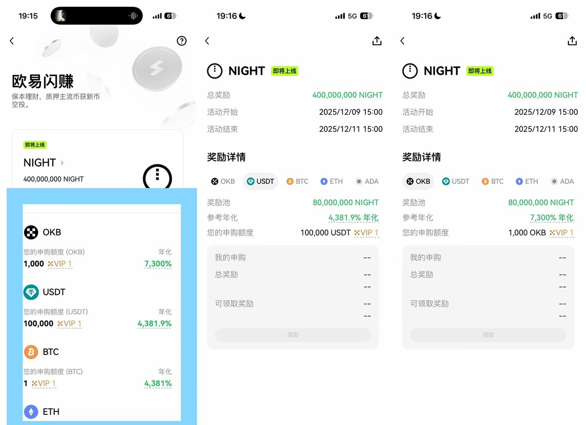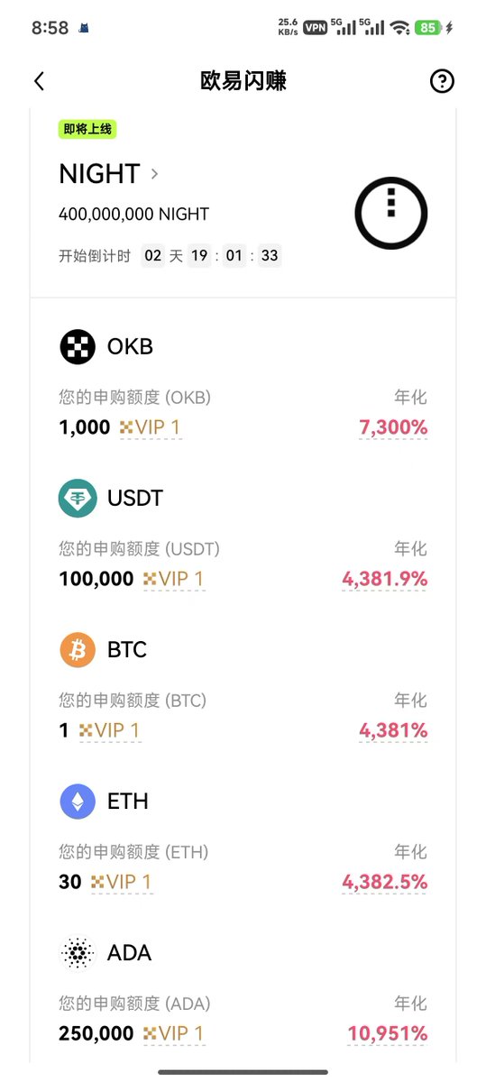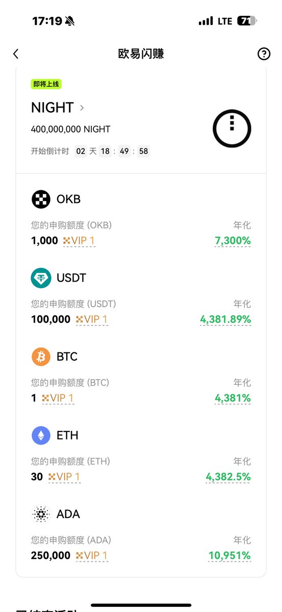 OKX 闪赚第十期将于2天18小时后开始,矿池共4亿 $NIGHT
