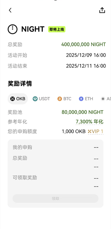 刚看到 #OKX 账户到了 $NIGHT 奖励。 @okxchinese