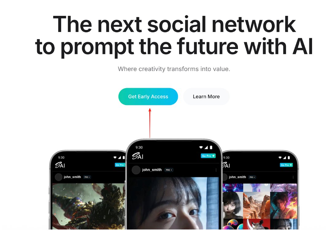 #SAI 本身是一个 AI 驱动的社交平台。你用 AI 生成图片、视频、写 prompt,不是生成完就结束,而是可以被看到、被互动、被放大。点赞、分享、互动这些平时在社交平台顺手做的事,在这里都是被认真对待的。