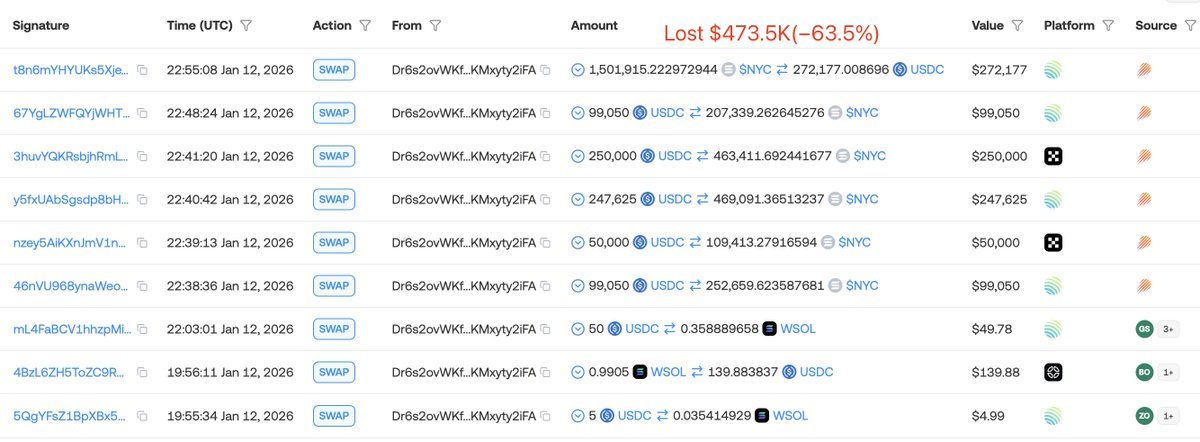 Many traders panic-sold, with trader Dr6s2o losing $473.5K(−63.5%) in under 20 minutes.