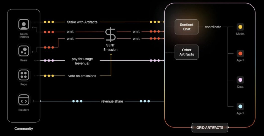 通过GRID, 能使用 AI,并直接分发和盈利(SENT 通证模式)。当前OpenAI正寻求万亿美元级别的IPO估值,而Sentient作为开源社区共有的替代方案,致力于将AI主导权归还公众。这一项目完全有能力以数十亿美元估值起步的。