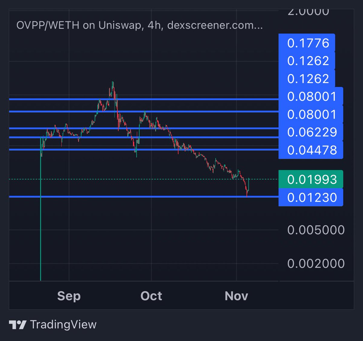 Over the past month, three whales have bought a total of 17M $OVPP($375K).