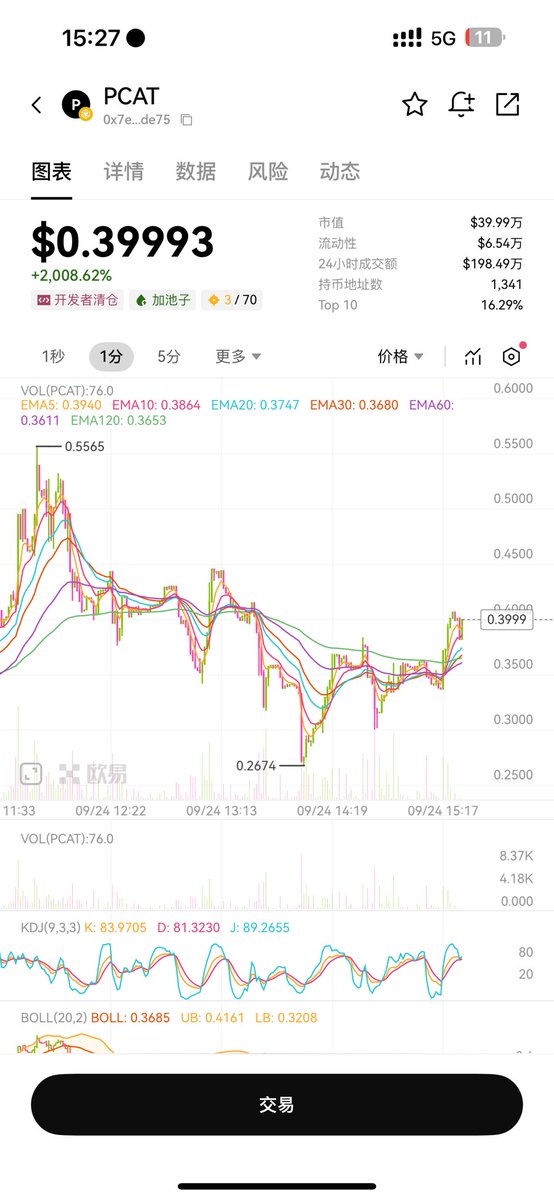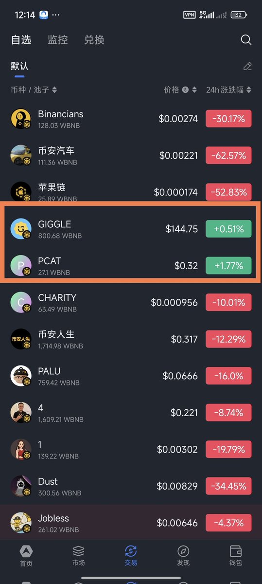 0x7eacf7c889f1f0cebc335aa4aa4839898178de75 买一点防身吧 慈善板块龙二 $PCAT 价值洼地 排行榜地址里,跟 $GIGGLE 高度相似 记得用币安钱包买卖,手续费低