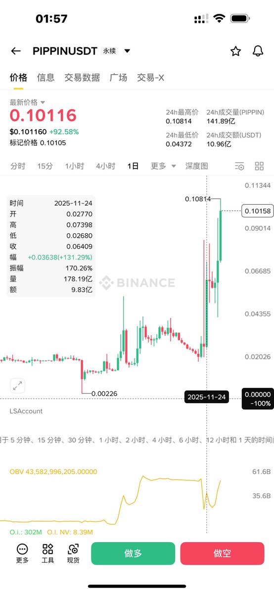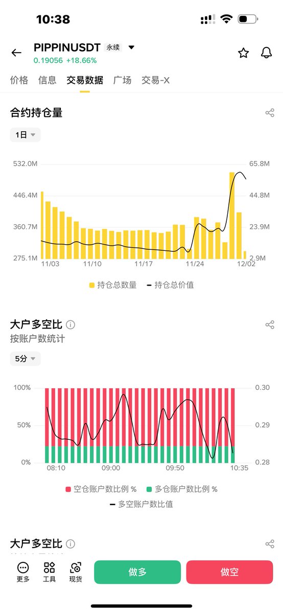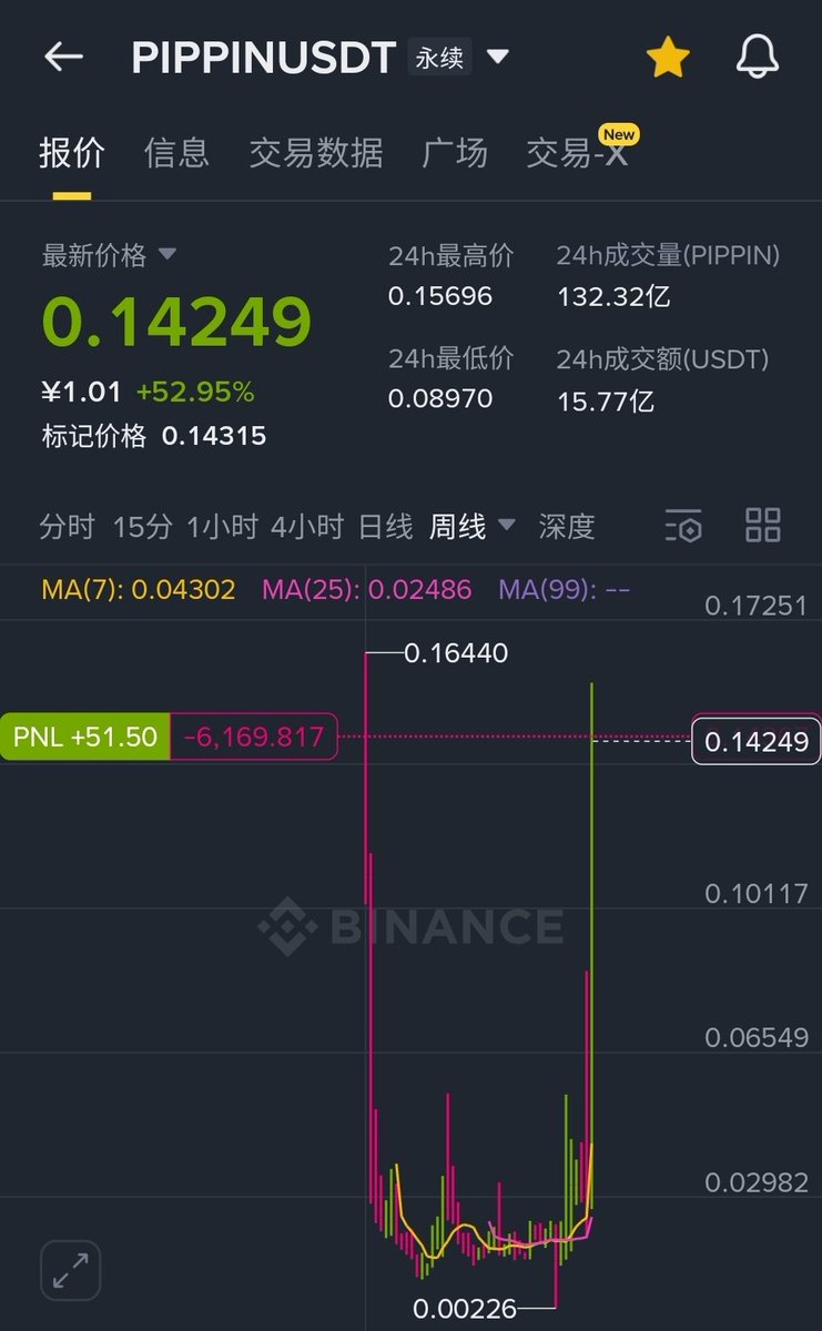 01.02 pippin 曾短时跌至 $0.35 ,今天又反弹到 $0.4883 了,从 2024.11.22 开始已持续了 45 天的操盘,且自 11.30 起大部分时间都是负费率,太磨人了