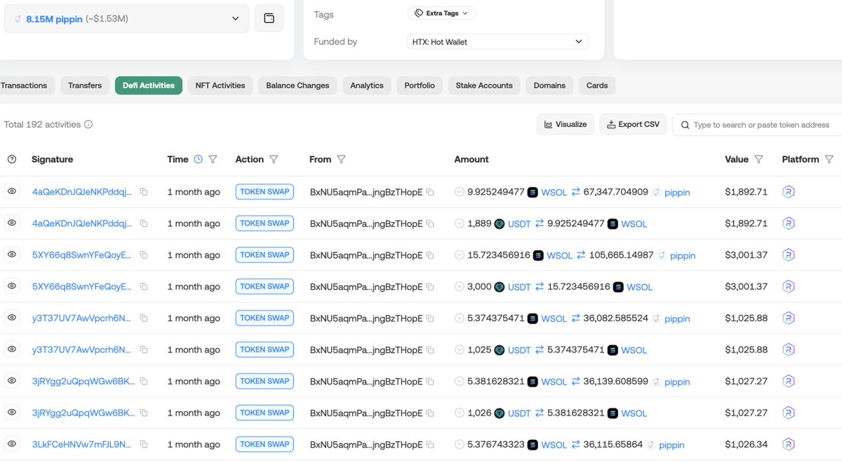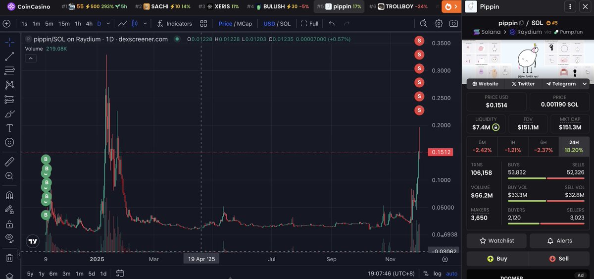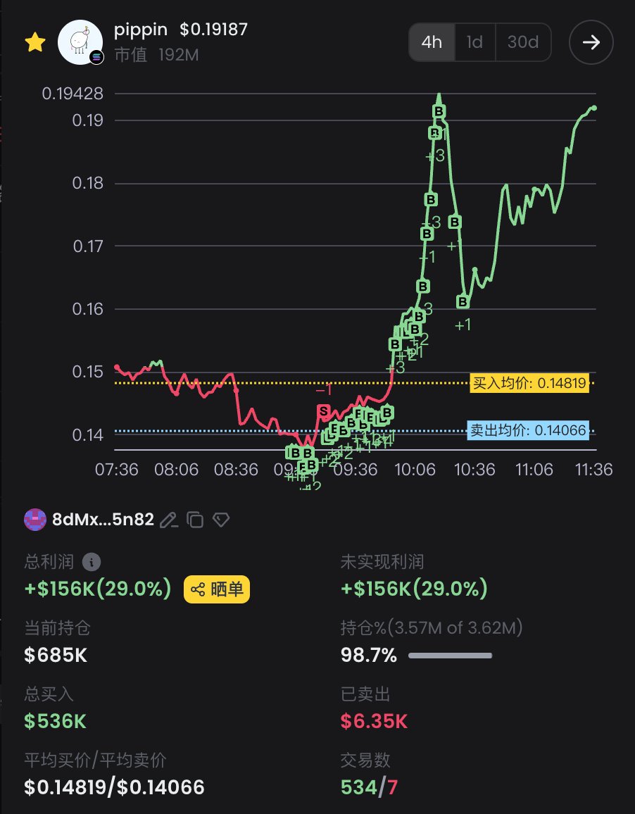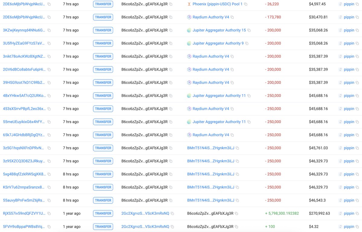 Diamond trader 2Gc2Xg just sold all 24.8M $pippin($3.74M) — tokens he held for over a year — locking in a profit of $3.65M (+4066%).