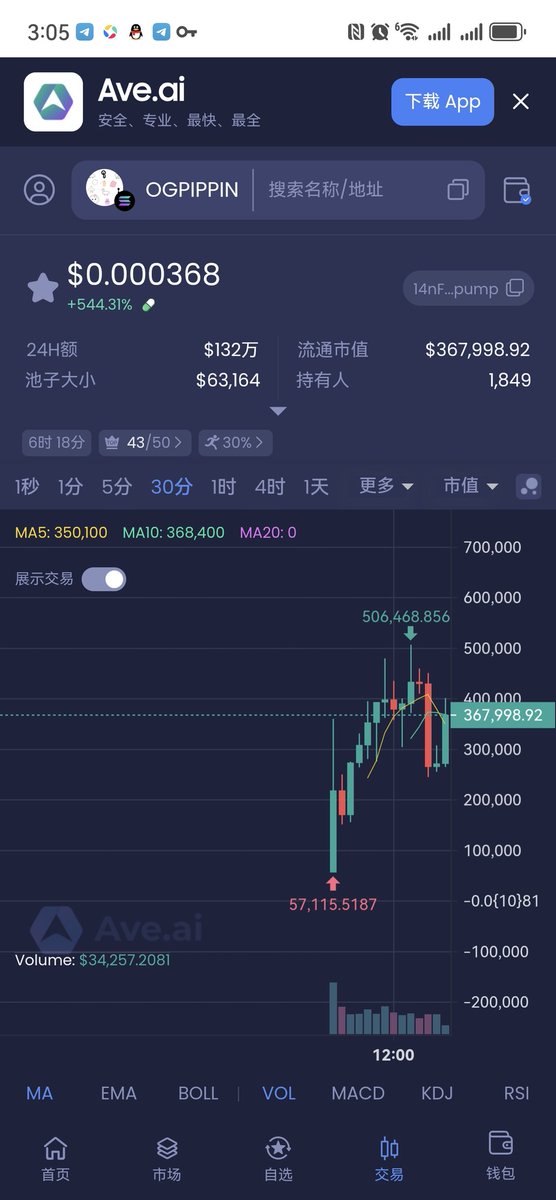 $PIPPIN 涨 484%