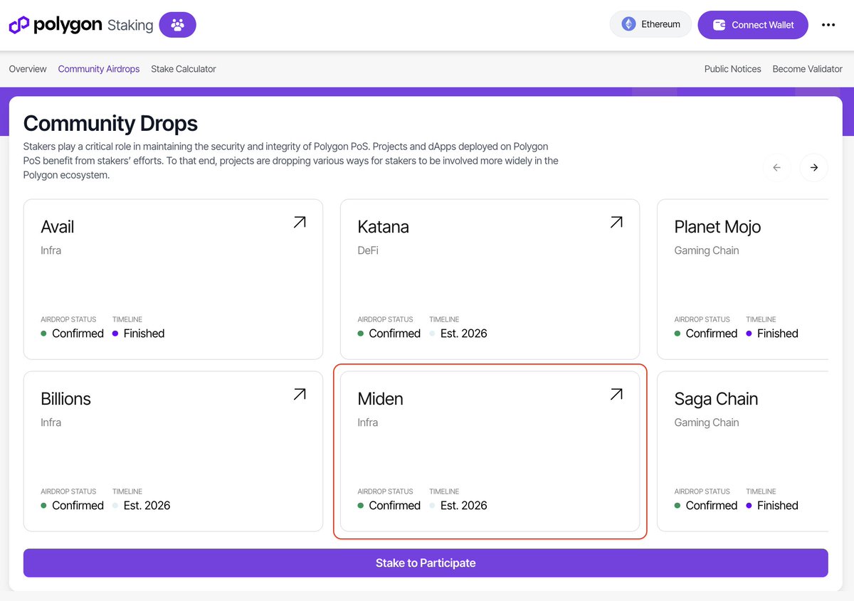 比如说 Miden 是 10% 的空投分配给 POL 持有者