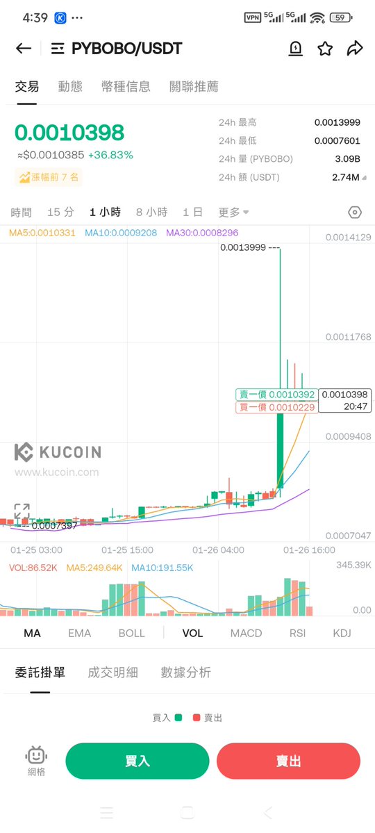 目前 $PYBOBO 已正式上线 #KuCoin,充值和交易通道全部开放,同时官方也开启了 KuCoin 交易大赛,给早期参与者额外激励。
