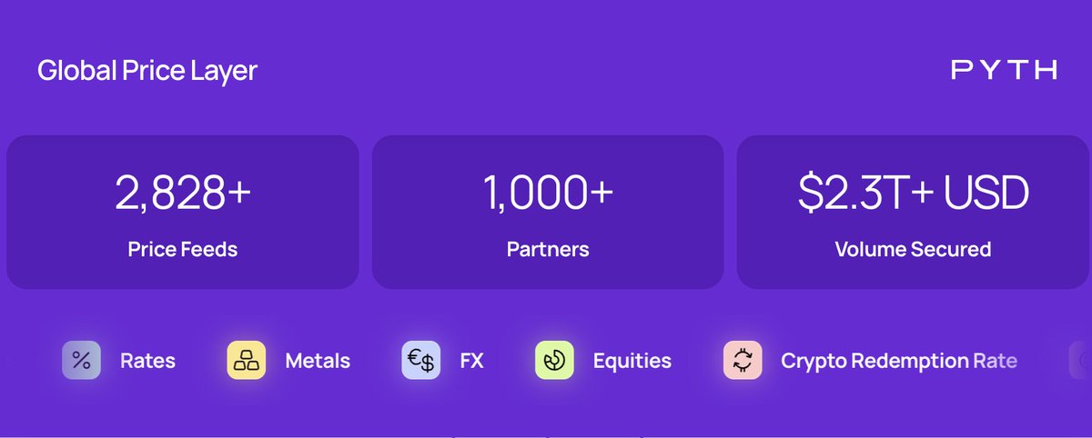 我们知道Smart Cashtags 要显示“实时价格”,不能靠中心化 API(容易被操纵或延迟)。目前 #Pyth 是 Solana 上最主流的去中心化预言机,聚合了华尔街机构、交易所的真实报价,既有加密也有股票,还有大宗和外汇市场价格,支持2828+种资产价格的喂价,X 很可能直接接入 Pyth 的喂价数据,确保用户看到的价格是可信、低延迟的,这无疑将是巨大利好。现在 $Pyth 0.07的价格,4亿美金市值,简直就在地板上,白捡!