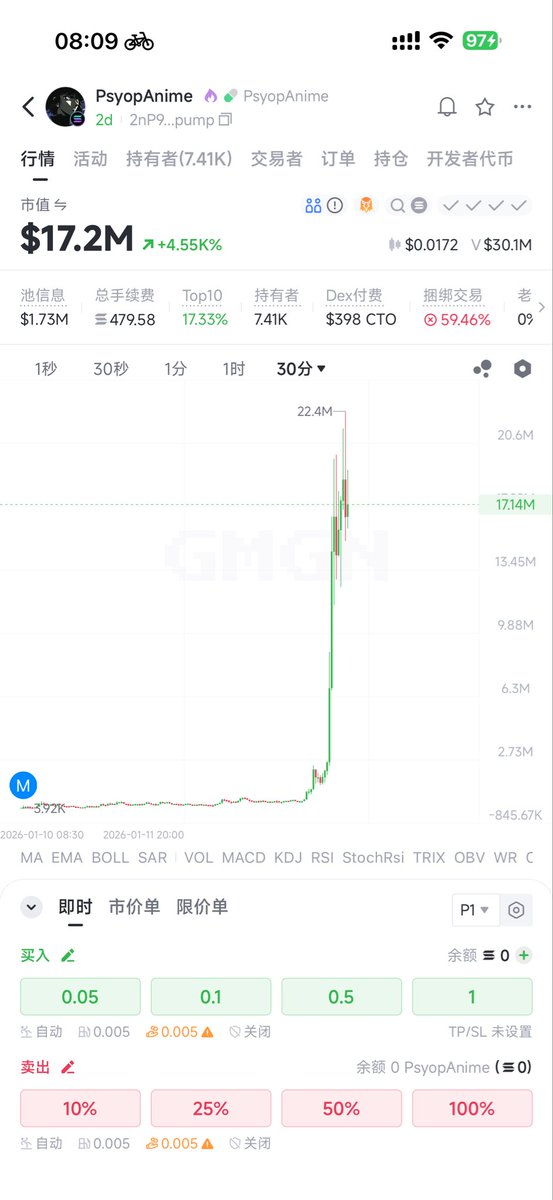 久违了SOL,久违了老马,久违了AI 昨天老马一个关注,pow奶了一下,直接20M 可惜昨天在BSC给我P迷糊了,看到的时候就10M了 $PsyopAnime