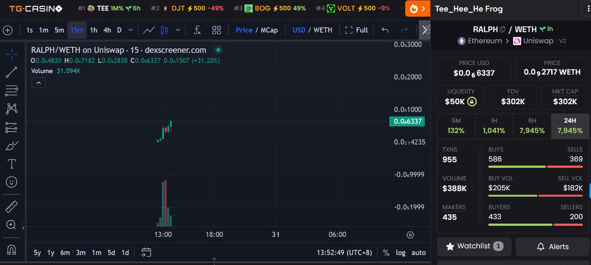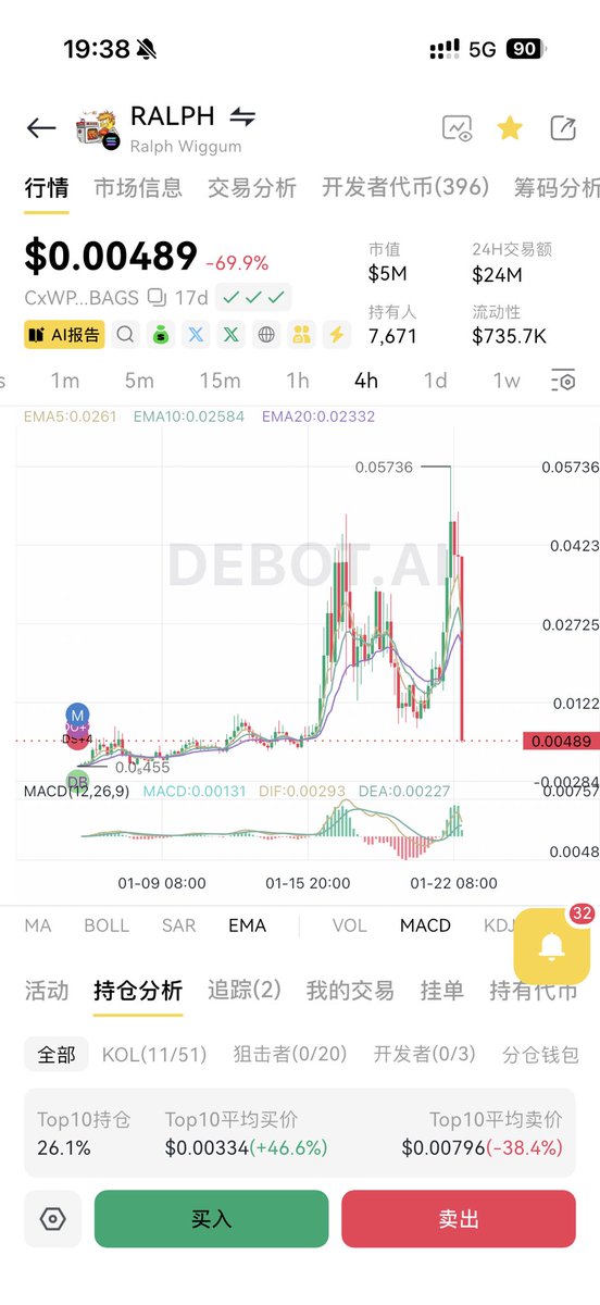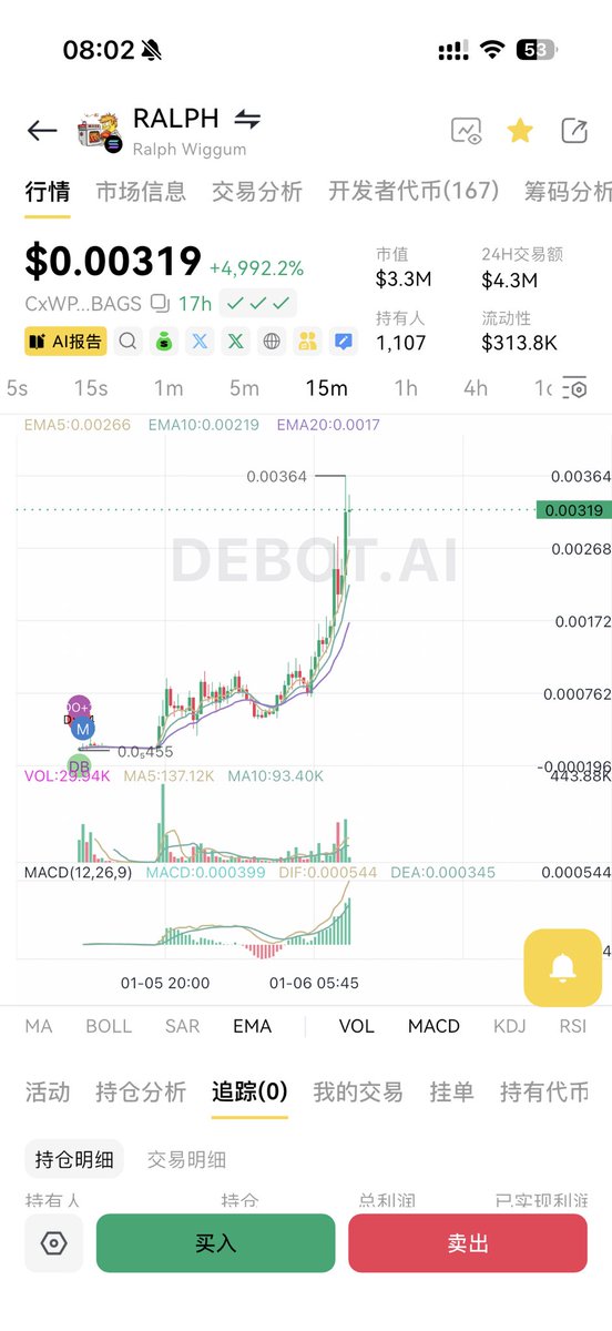 卧槽 真尼玛牛市来了吗? $RALPH 都4m 了 又是 20k 买的 我去